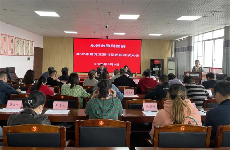 3月9日上午,永州市脑科医院召开2022年度党支部书记述职评议会议,医院党总支部委员会书记、院长龙海鹏听取述职并点评,医院党总支部委员会组织委员、副院长杨先华主持会议。