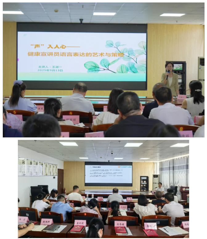 培训中,来自湖南省大众语言艺术研究会常务理事兼永州工作处主任王淑一,以及永州市脑科医院党委委员、副主任医师周晓坤,分别围绕“心理健康知识宣讲员语言表达的艺术与策略”和“心理健康知识宣讲注意事项”等主题,为参训人员带来了一场内容充实、形式生动的专业课程。他们以亲切自然、深入浅出的语言,通过真实案例和现场互动演示,引导学员主动参与、亲身体验,现场气氛积极热烈。两位专家还就常见沟通误区、宣讲工作的规范流程进行了实时演练与指导,细致讲解了如何增强宣讲的感染力与吸引力,如何精准传递共情与关怀,以及宣讲工作的相关要求,为学员提供了系统而实用的指导,有效提升了学员在心理健康科普工作中的专业素养和宣讲能力。