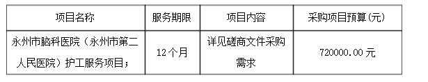 1、采购项目名称:永州市脑科医院(永州市第二人民医院)护工服务项目;