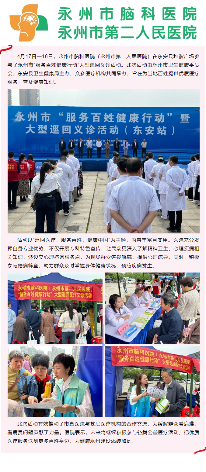 医疗服务提升年 | 永州市脑科医院(永州市第二人民医院)积极参与大型巡回义诊,助力百姓健康