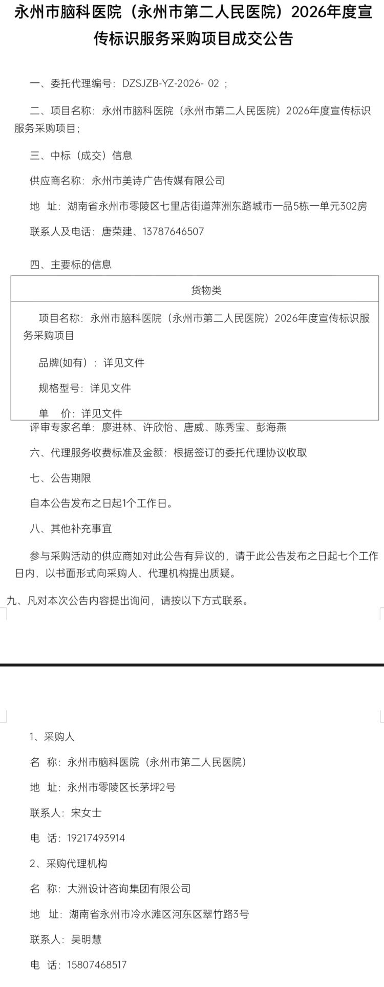 2026年度宣传标识服务采购项目成交公告